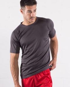 Girocollo a costine senza impuntura, etichetta a trasferimento termico, proprietà traspiranti Aquafx™, proprietà antimicrobiche Freshcare ®, doppia cucitura sulla base, corpo asimmetrico per evitare l’effetto piega centrale, 100% Poliestere maglia jersey – 153 g/m2. Vestibilità: Regular
