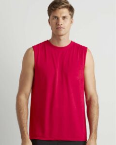 T-shirt Slim fit senza maniche, inserti in mesh sotto giromanica, girocollo nastrato . 100% Polestere – 140 g/m2. Vestibilità: Slim